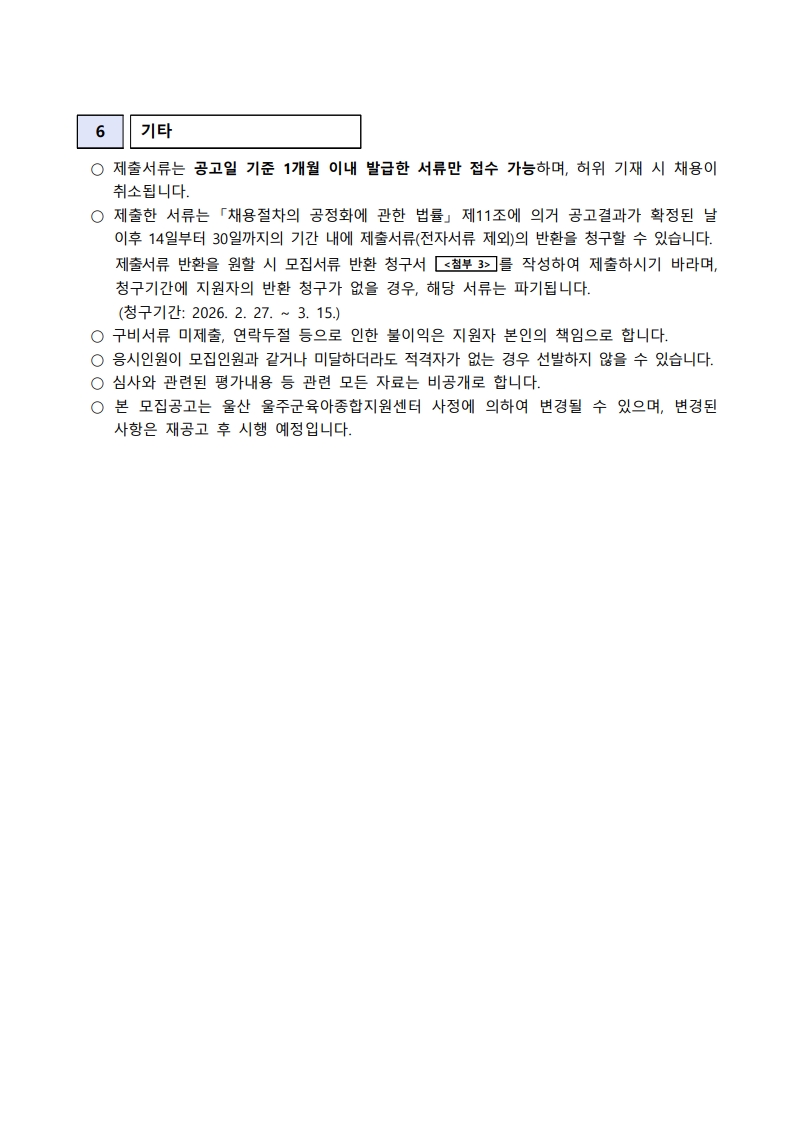 | ÀÌÀü±Û | ¿ï»ê ³²±¸À°¾ÆÁ¾ÇÕÁö¿ø¼¾ÅÍ Á÷¿ø(´ëü±³»ç, ´ëüÁ¶¸®»ç) ä¿ë °ø°í |