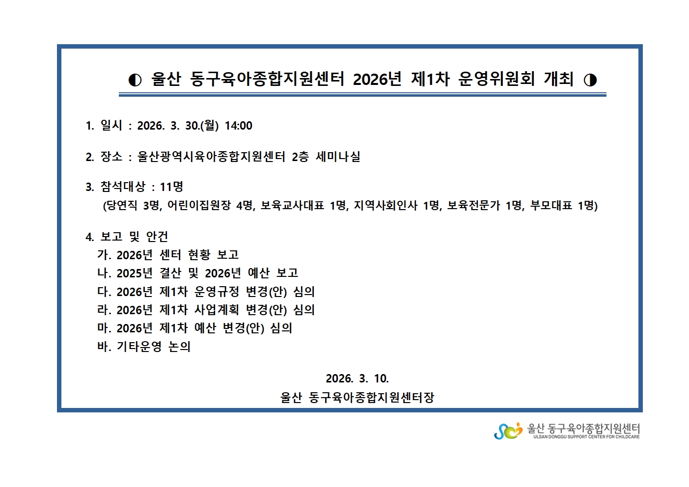 [º»¼¾ÅÍ]2026³â Á¦1Â÷ ¿î¿µÀ§¿øÈ¸ °³ÃÖ ¾È³»