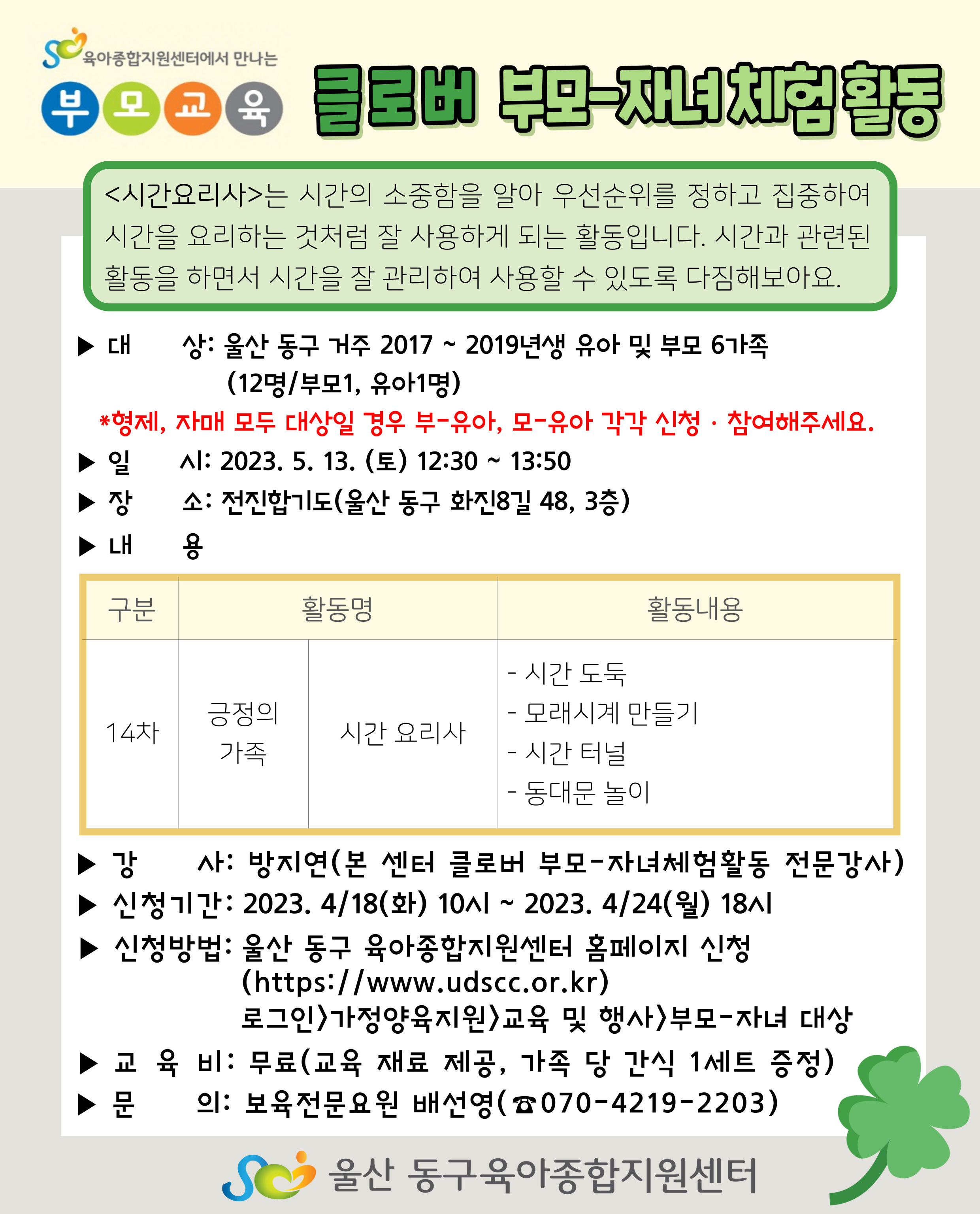 | Ŭ·Î¹ö ºÎ¸ð-ÀÚ³àüÇèȰµ¿(14Â÷): [±àÁ¤Àǰ¡Á·] ½Ã°£¿ä¸®»ç -À¯¾Æ(2017~2019³â»ý) | |||