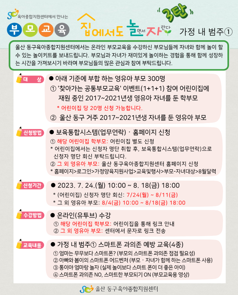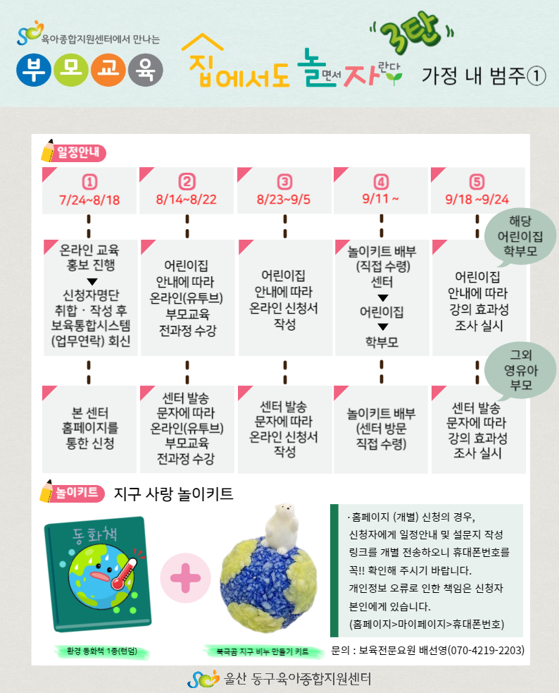 ¡Ø ȨÆäÀÌÁö»ó °³ÀÎÁ¤º¸(ÇÚµåÆù¹øÈ£ µî)¸¦ Àß È®ÀÎÇϽþî Á¤º¸¿À·ù·Î ÀÎÇÑ ºÒÀÌÀÍÀÌ ¾øµµ·Ï ´Ù½Ã Çѹø È®ÀÎÇØÁÖ¼¼¿ä. (°³ÀÎÁ¤º¸ ¿À·ù·Î ÀÎÇÑ Ã¥ÀÓÀº ½ÅûÀÚ¿¡°Ô ÀÖÀ½À» ¾Ë·Áµå¸³´Ï´Ù.) ¡Ø ½Åû´ë»óÀº ¿µÀ¯¾Æ(2017~2021³â»ý) ºÎ¸ð 0¸í ÀÔ´Ï´Ù. (Âü¿© ¾î¸°ÀÌÁý ½ÅûÀοø¿¡ µû¶ó ºÎ¸ð ½ÅûÀοøÀÌ Ãß°¡ µÉ ¼ö ÀÖ½À´Ï´Ù.) ¡Ø ½Åû ¿Ï·áµÈ ºÎ¸ð´Ôµé²²´Â 8/11(±Ý), 8/18(±Ý) µÎÂ÷·Ê ¾È³» ¹®ÀÚ°¡ ¹ß¼ÛµÉ ¿¹Á¤ÀÔ´Ï´Ù. (¹ß¼Û ¹®ÀÚ È®ÀÎ ÈÄ, ¿Â¶óÀÎ ±³À°À» ¼ö°ÇØÁֽñ⠹ٶø´Ï´Ù.) 8/11(±Ý) - 8/10 ÀÌÀü ½Åû ¿Ï·áÇÑ ºÎ¸ð´Ô 8/18(±Ý) - 8/10 ÀÌÈÄ ½Åû ¿Ï·áÇÑ ºÎ¸ð´Ô ¡Ø ¾çÀ°ÀÚ 1¸í´ç ³îÀÌŰƮ 1°³ Á¦°øµË´Ï´Ù. ¿µÀ¯¾Æ Àڳడ 2¸í ÀÌ»óÀÎ °æ¿ì¿¡´Â ¾ö¸¶, ¾Æºü, ±âŸ ¾çÀ°ÀÚ °¢°¢ ½ÅÃ»ÇØÁÖ¼¼¿ä. ![]() ![]() |