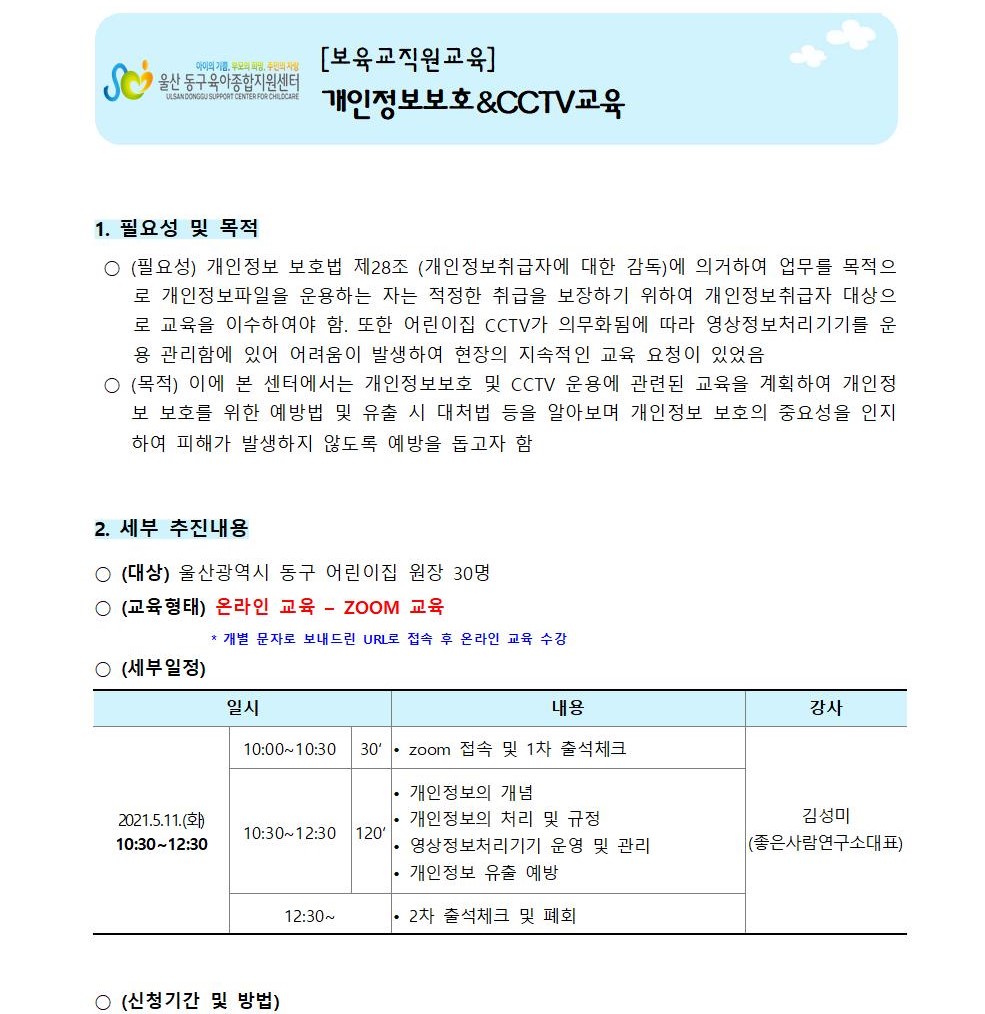 | [º¸À°±³Á÷¿ø±³À°] °³ÀÎÁ¤º¸º¸È£&CCTV ±³À° | |||