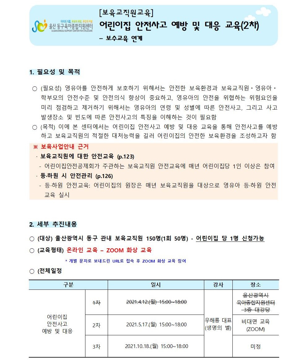 | [º¸À°±³Á÷¿ø±³À°] ¾î¸°ÀÌÁý ¾ÈÀü»ç°í ¿¹¹æ ¹× ´ëÀÀ ±³À°(2Â÷) | |||