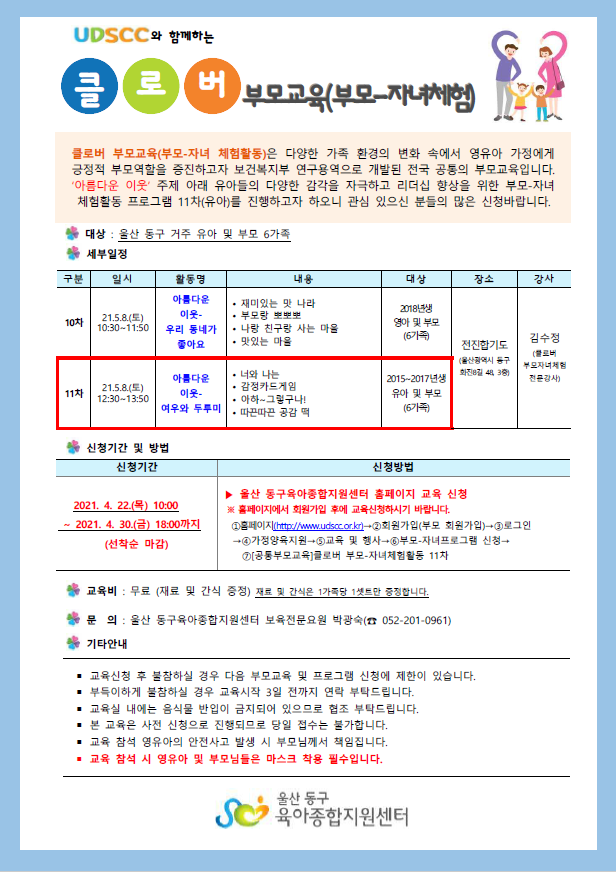 | [°øÅëºÎ¸ð±³À°] Ŭ·Î¹ö ºÎ¸ð-ÀÚ³àüÇè 11Â÷(À¯¾Æ)- ¾Æ¸§´Ù¿î ÀÌ¿ô/¿©¿ì¿Í µÎ·ç¹Ì | |||