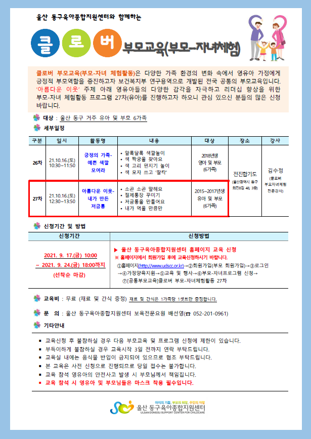 | [°øÅëºÎ¸ð±³À°] Ŭ·Î¹ö ºÎ¸ð-ÀÚ³àüÇèȰµ¿ 27Â÷(À¯¾Æ)-¾Æ¸§´Ù¿î ÀÌ¿ô/³»°¡ ¸¸µç Àú±ÝÅë | |||