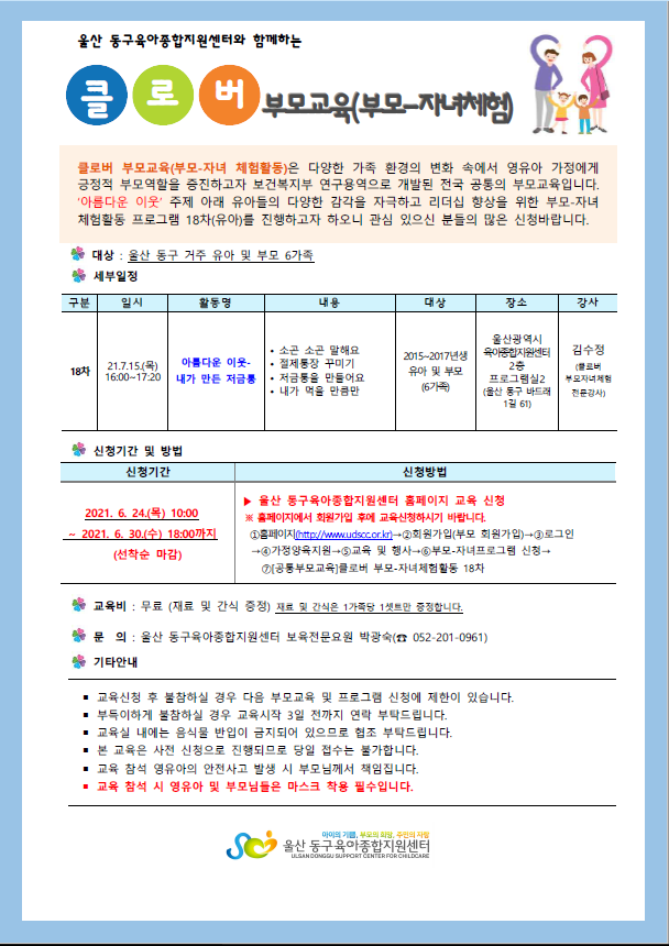 [°øÅëºÎ¸ð±³À°] Ŭ·Î¹ö ºÎ¸ð-ÀÚ³àüÇèȰµ¿ 18Â÷(À¯¾Æ)-¾Æ¸§´Ù¿î ÀÌ¿ô/³»°¡ ¸¸µç Àú±ÝÅë-Äڷγª19ÀÇ È®»êÀ¸·Î Ãë¼ÒµÊ