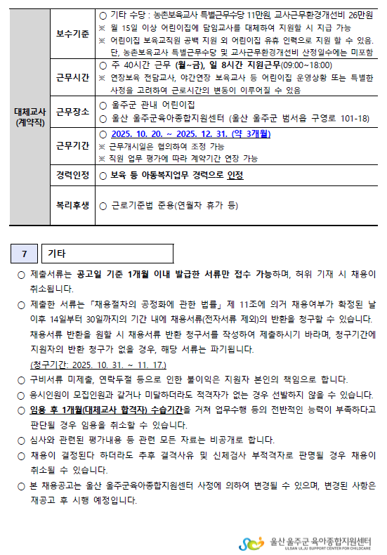 ¿ï»ê ¿ïÁÖ±ºÀ°¾ÆÁ¾ÇÕÁö¿ø¼¾ÅÍ Á÷¿ø(´ëü±³»ç) ä¿ë °ø°í