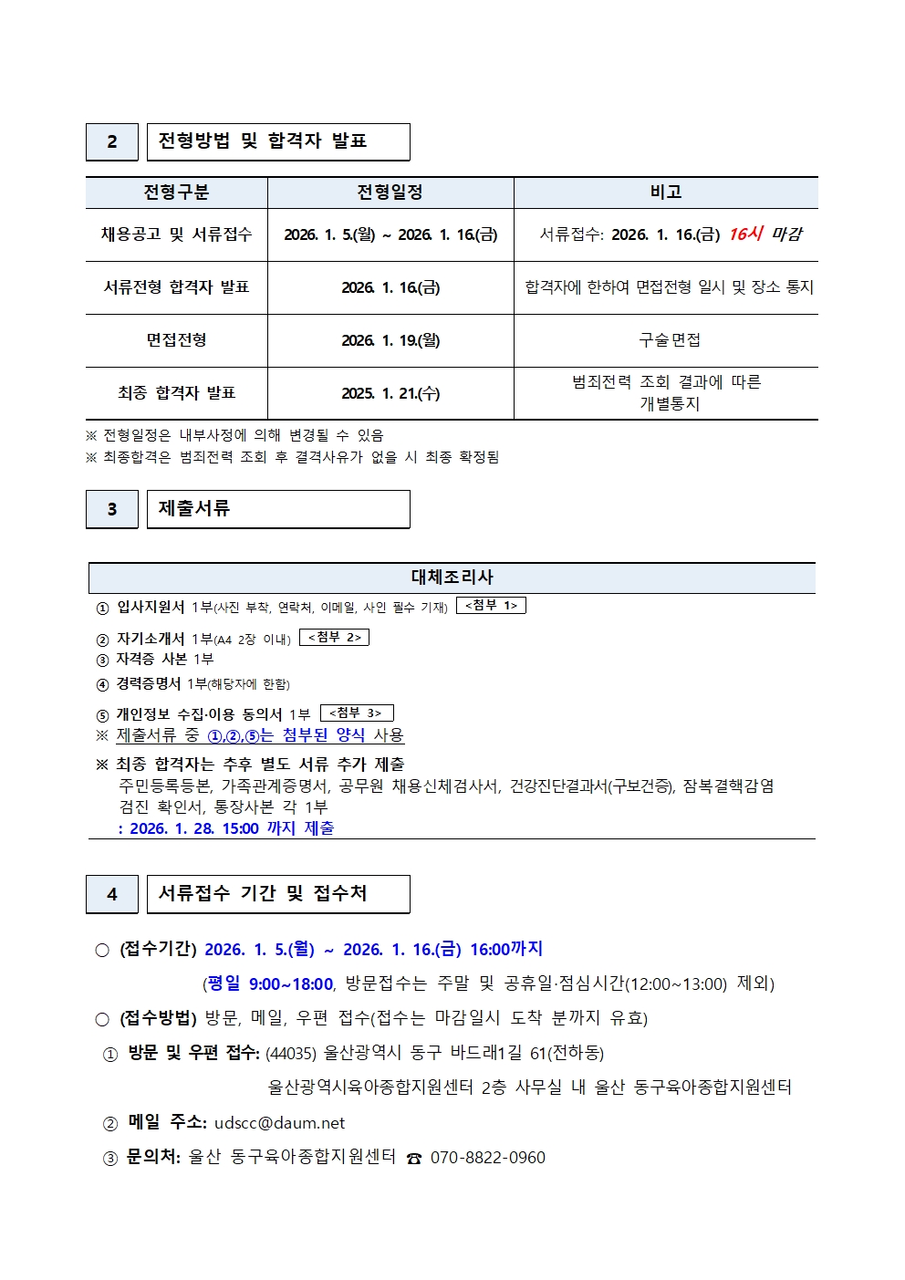 | ÀÌÀü±Û | ¿ï»ê ³²±¸À°¾ÆÁ¾ÇÕÁö¿ø¼¾ÅÍ Á÷¿ø(´ëü±³»ç, ´ëüÁ¶¸®»ç) ä¿ë °ø°í |