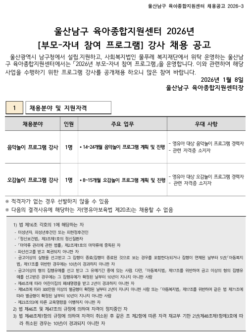 ¿ï»ê ³²±¸À°¾ÆÁ¾ÇÕÁö¿ø¼¾ÅÍ Á÷¿ø(ÇÁ·Î±×·¥ °»ç) ä¿ë °ø°í