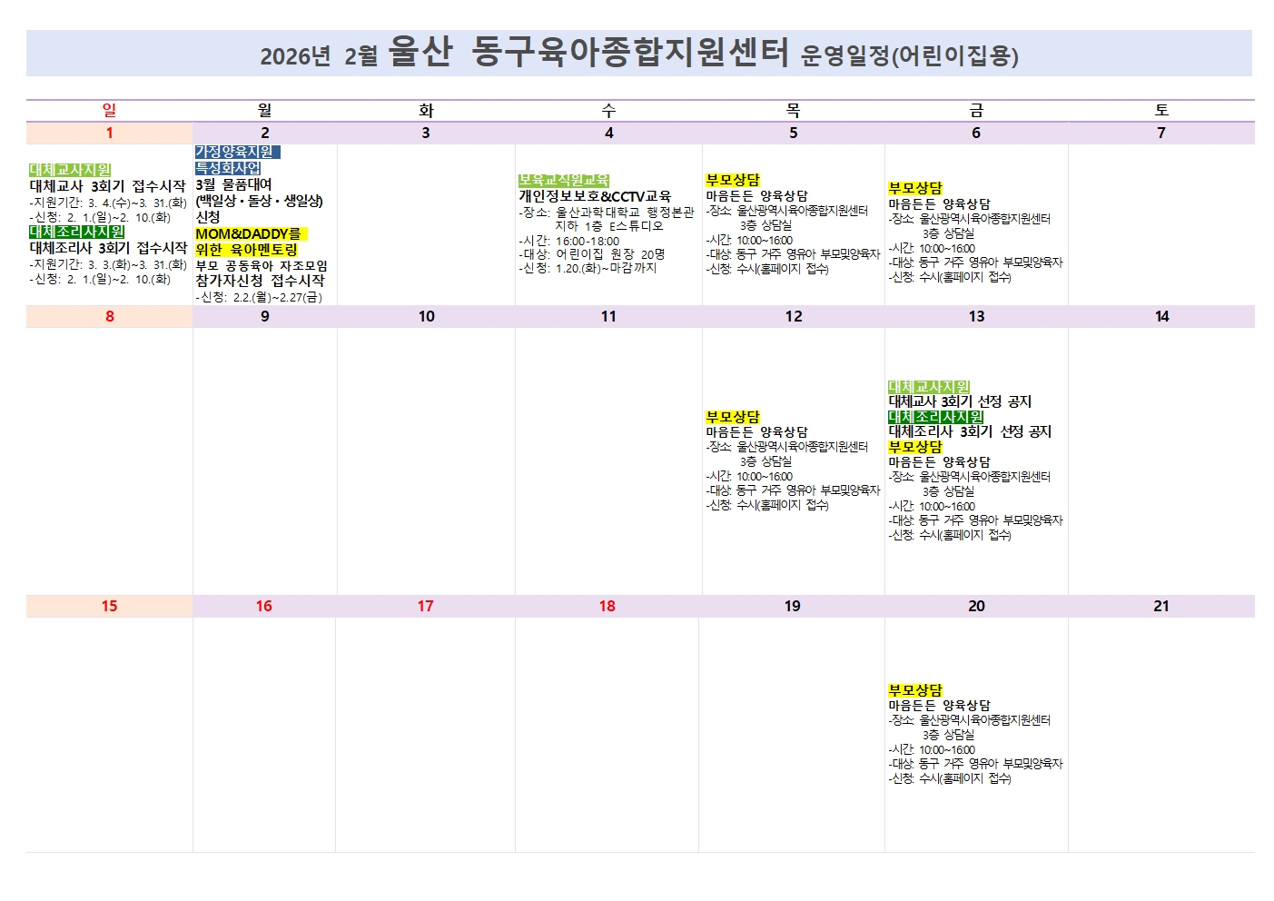 [º»¼¾ÅÍ]2026³â 2¿ù ¿î¿µ ÀÏÁ¤
