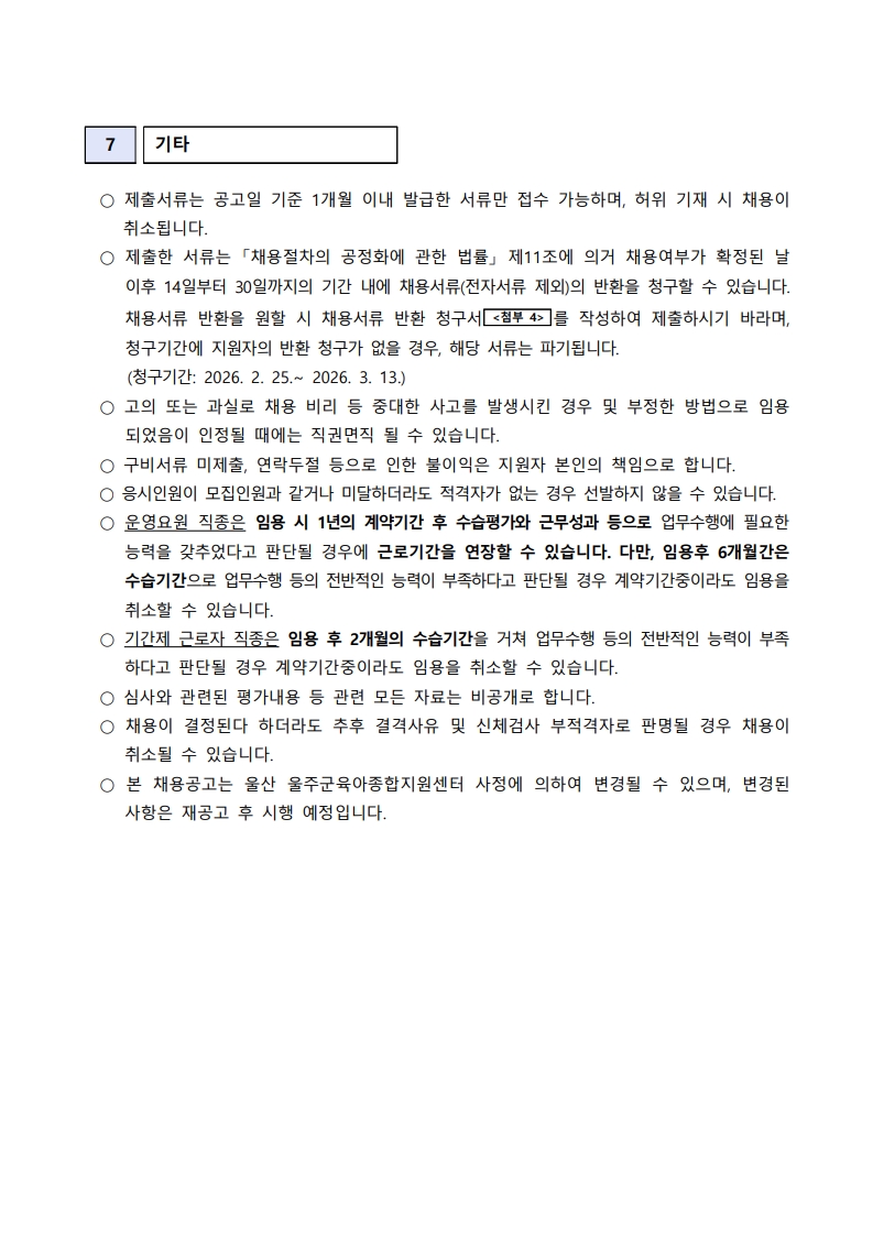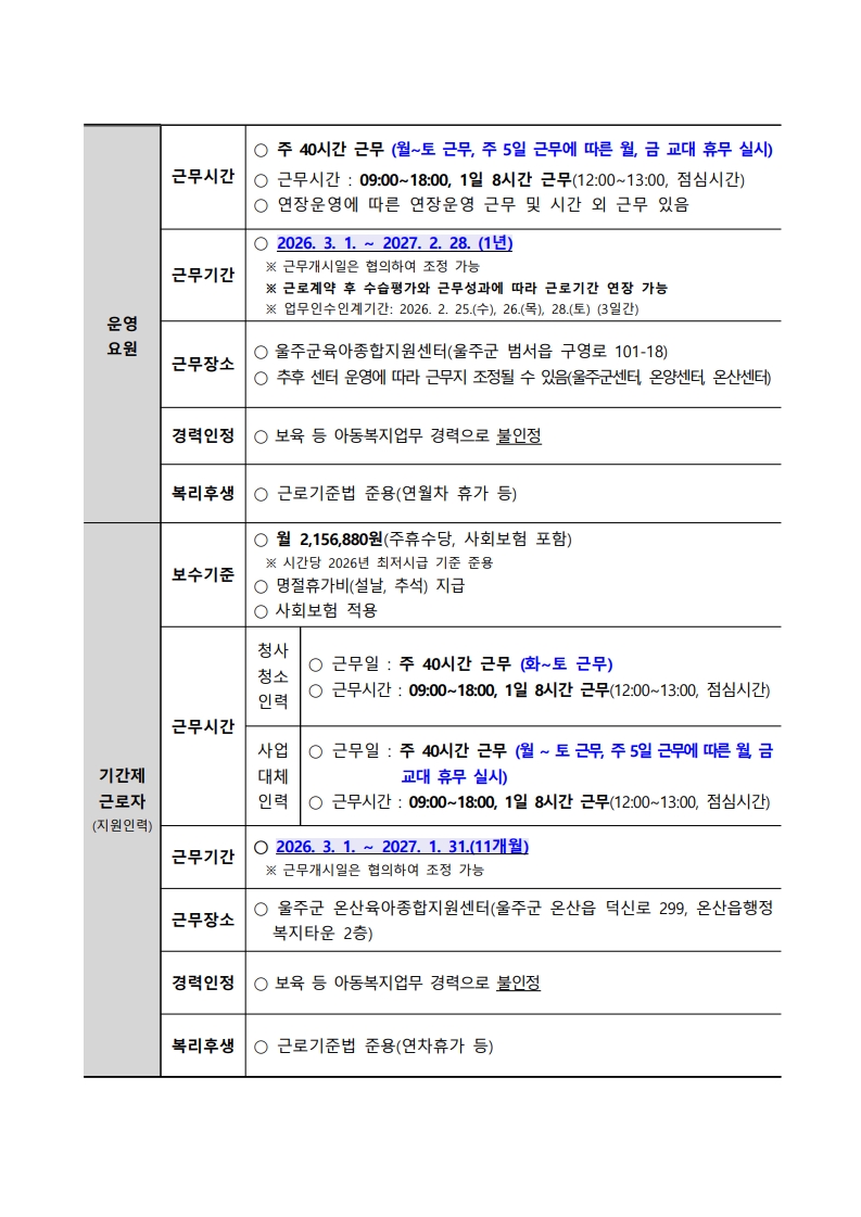 ¿ï»ê ¿ïÁÖ±ºÀ°¾ÆÁ¾ÇÕÁö¿ø¼¾ÅÍ Á÷¿ø(¿î¿µ¿ä¿ø, ±â°£Á¦ ±Ù·ÎÀÚ) ä¿ë °ø°í