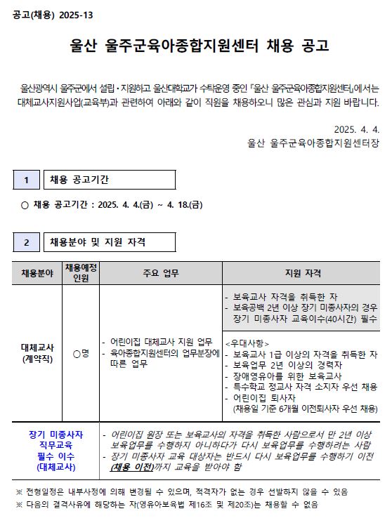 ¿ï»ê ¿ïÁÖ±ºÀ°¾ÆÁ¾ÇÕÁö¿ø¼¾ÅÍ Á÷¿ø(´ëü±³»ç) ä¿ë °ø°í