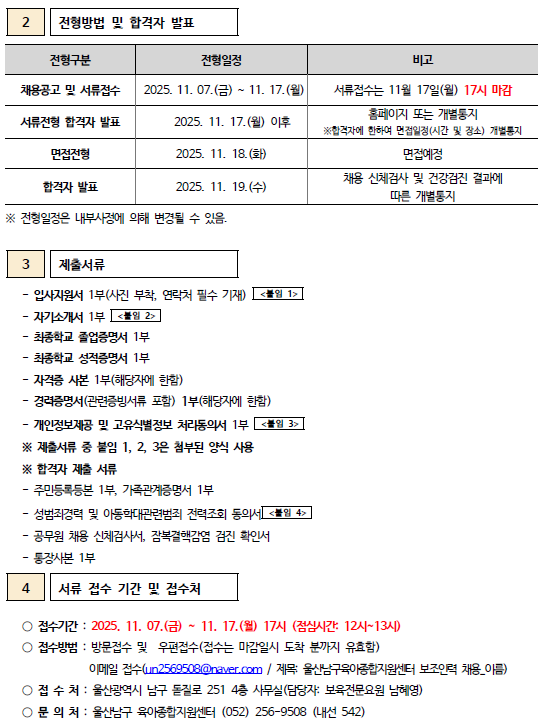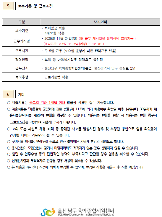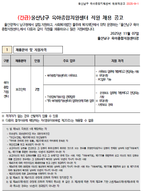 ¿ï»ê ³²±¸À°¾ÆÁ¾ÇÕÁö¿ø¼¾ÅÍ Á÷¿ø(º¸Á¶ÀηÂ) ä¿ë Àç°ø°í