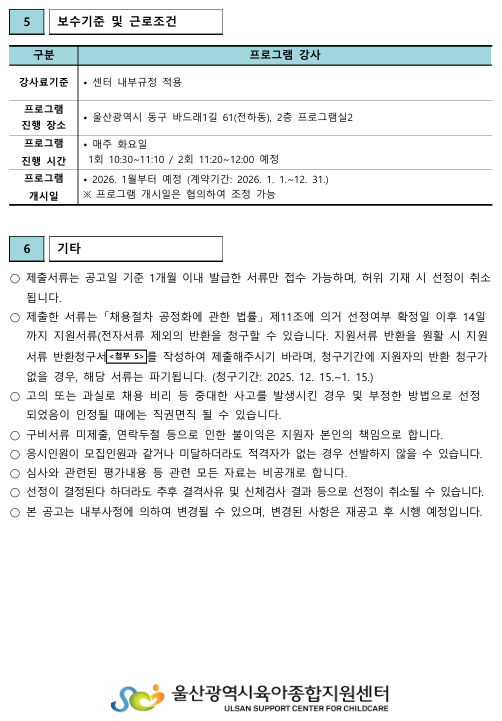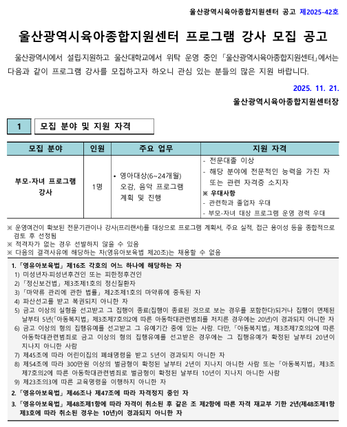 ¿ï»ê±¤¿ª½ÃÀ°¾ÆÁ¾ÇÕÁö¿ø¼¾ÅÍ Á÷¿ø(ºÎ¸ð-ÀÚ³à ÇÁ·Î±×·¥ °»ç) ä¿ë °ø°í