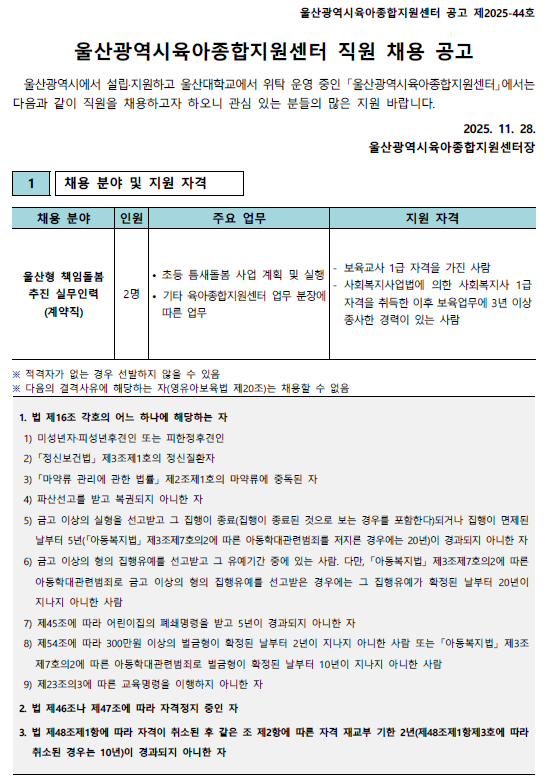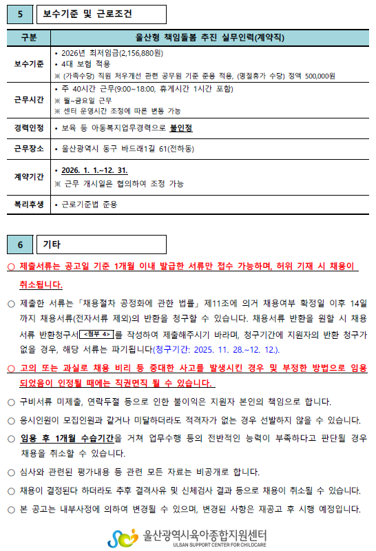 ¿ï»ê±¤¿ª½ÃÀ°¾ÆÁ¾ÇÕÁö¿ø¼¾ÅÍ Á÷¿ø(¿ï»êÇü Ã¥ÀÓµ¹º½ ÃßÁø ½Ç¹«ÀηÂ) ä¿ë °ø°í