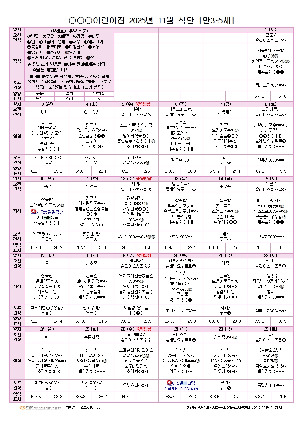 2025³â 11¿ù ½Ä´Ü °øÁö»çÇ× ¹× ½Ä´Ü