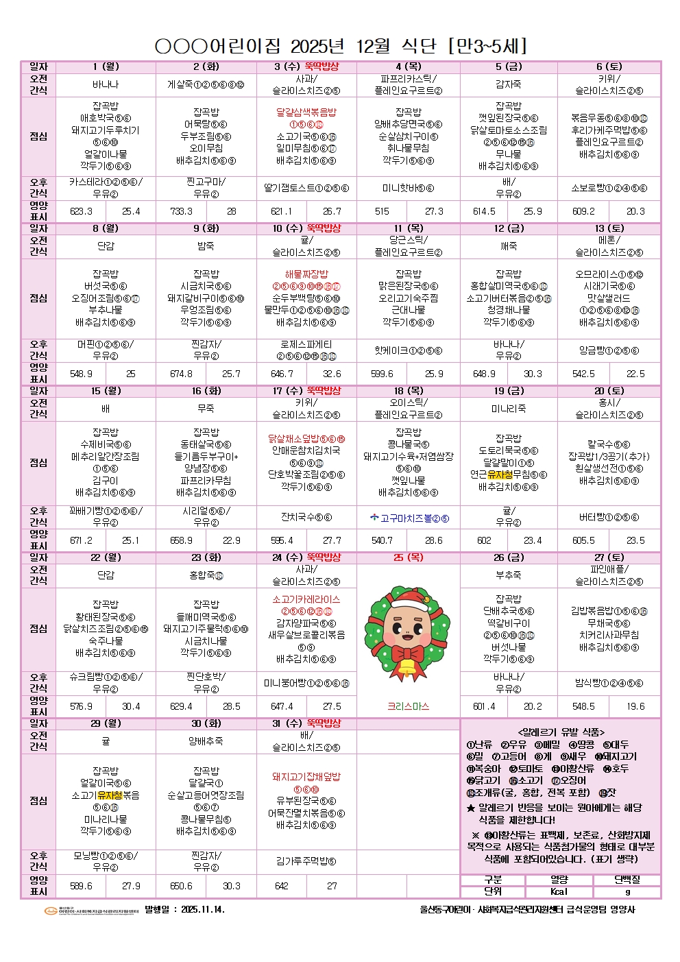 2025³â 12¿ù ½Ä´Ü °øÁö»çÇ× ¹× ½Ä´Ü