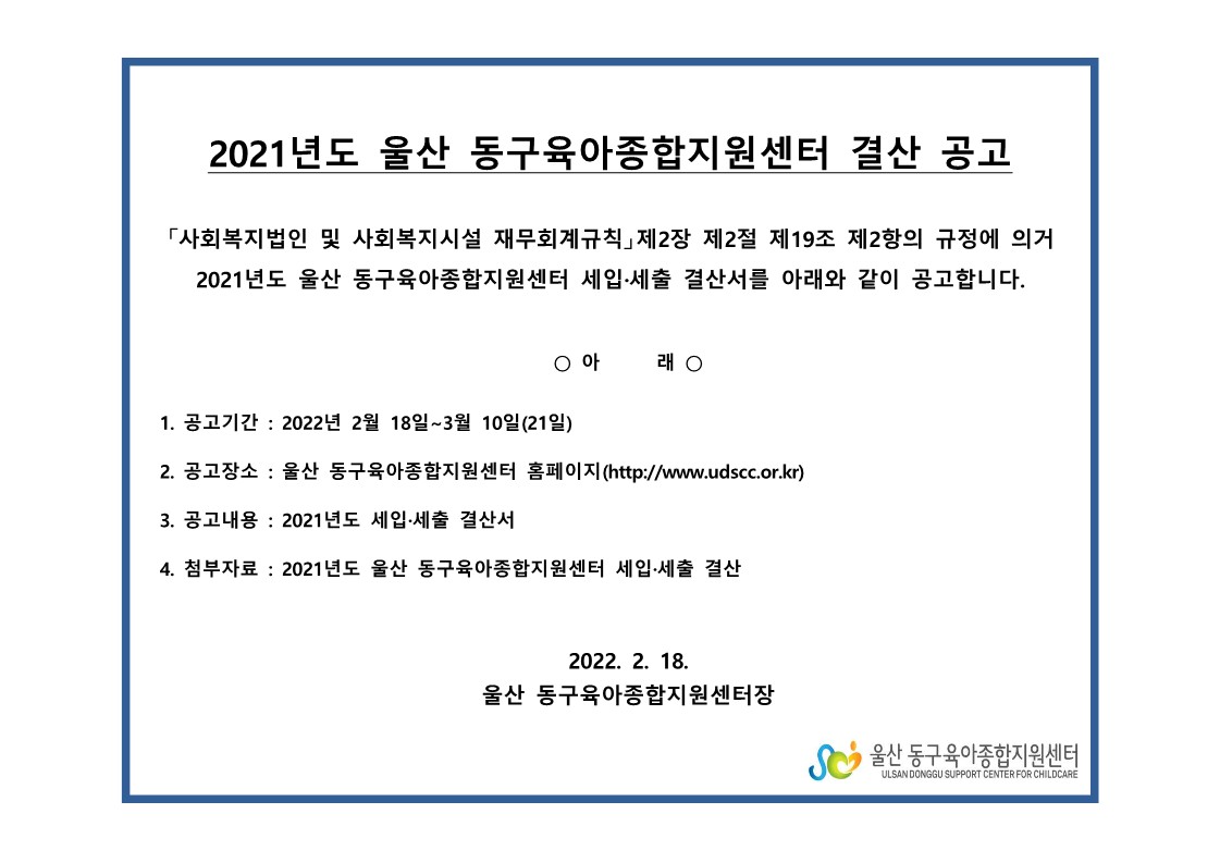 [º»¼¾ÅÍ]¿ï»ê µ¿±¸À°¾ÆÁ¾ÇÕÁö¿ø¼¾ÅÍ 2021³â °á»ê °ø°í