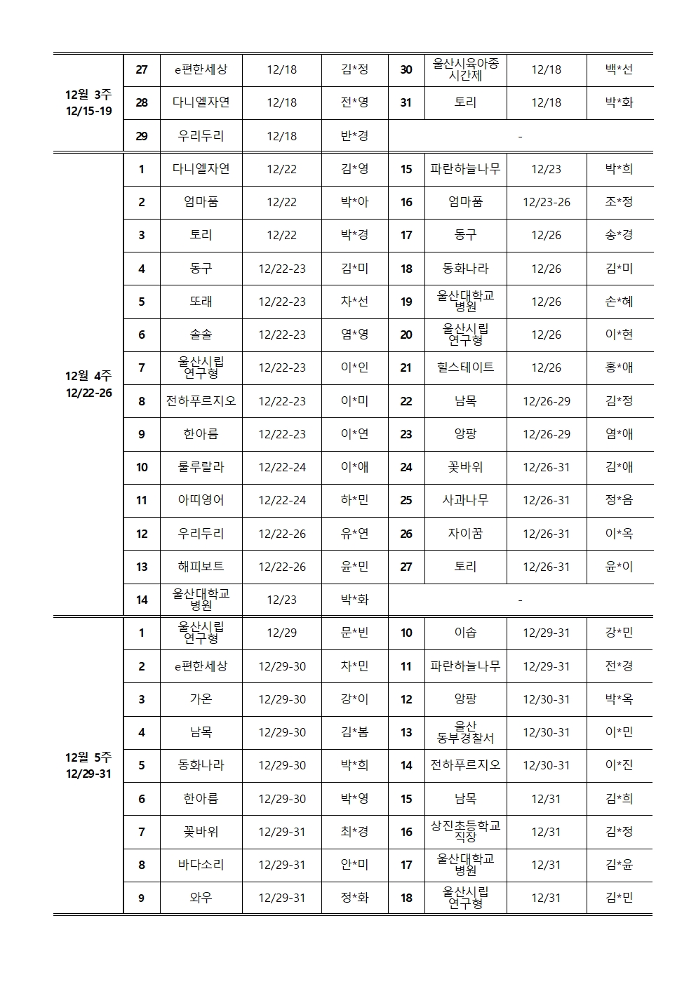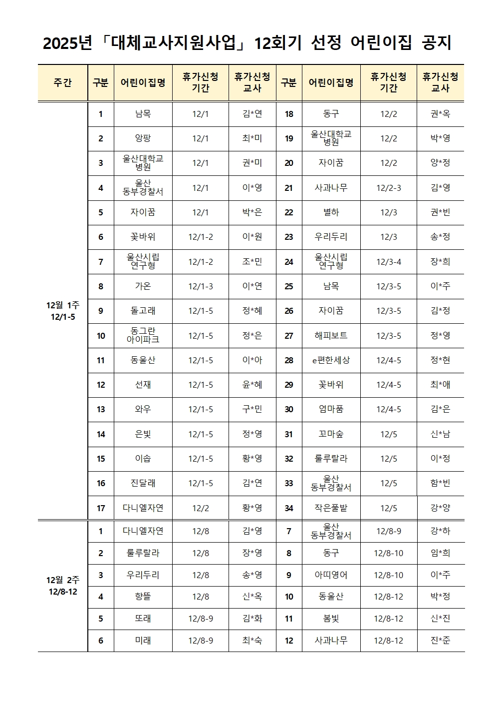 [¿ï»ê µ¿±¸À°¾ÆÁ¾ÇÕÁö¿ø¼¾ÅÍ] ´ëü±³»çÁö¿ø»ç¾÷ 2025³â 12ȸ±â ¼±Á¤°øÁö