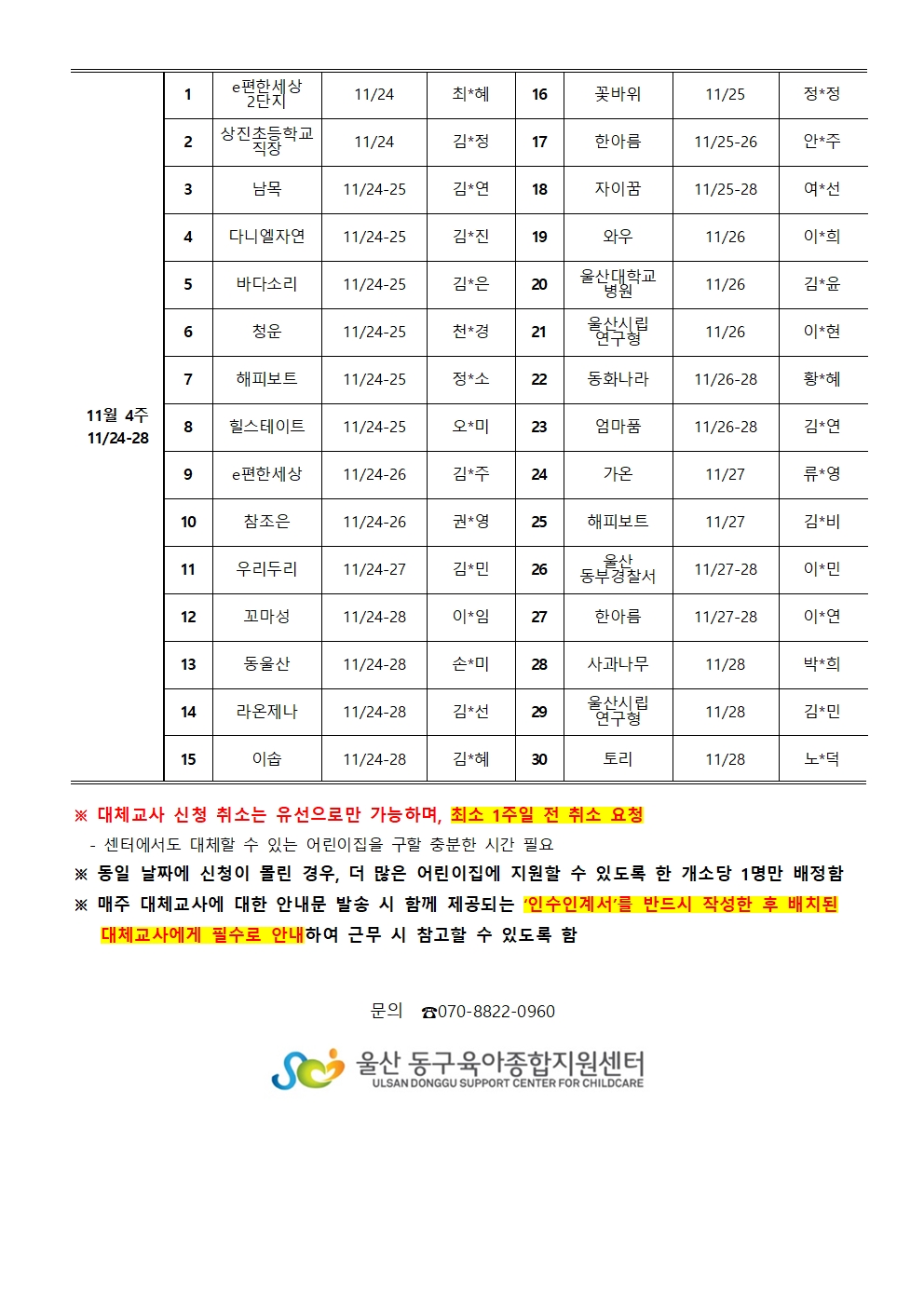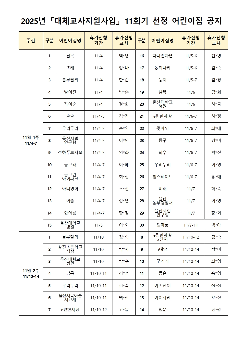 [¿ï»ê µ¿±¸À°¾ÆÁ¾ÇÕÁö¿ø¼¾ÅÍ] ´ëü±³»çÁö¿ø»ç¾÷ 2025³â 11ȸ±â ¼±Á¤°øÁö