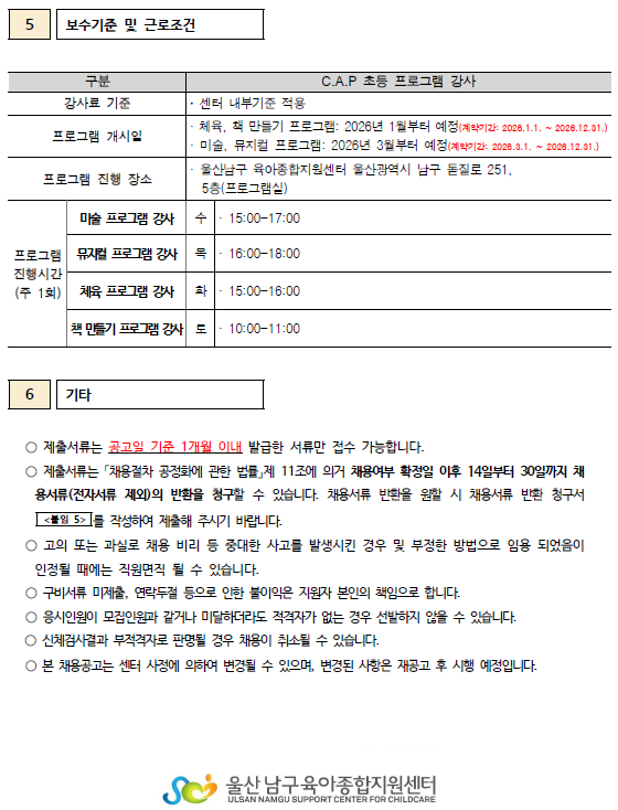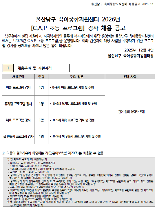 ¿ï»ê ³²±¸À°¾ÆÁ¾ÇÕÁö¿ø¼¾ÅÍ Á÷¿ø(C.A.P Ãʵî ÇÁ·Î±×·¥ °»ç) ä¿ë °ø°í