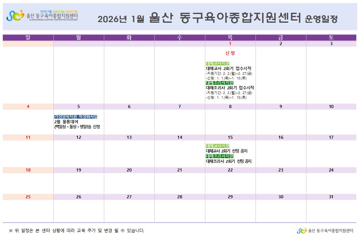 [º»¼¾ÅÍ]2026³â 1¿ù ¿î¿µ ÀÏÁ¤