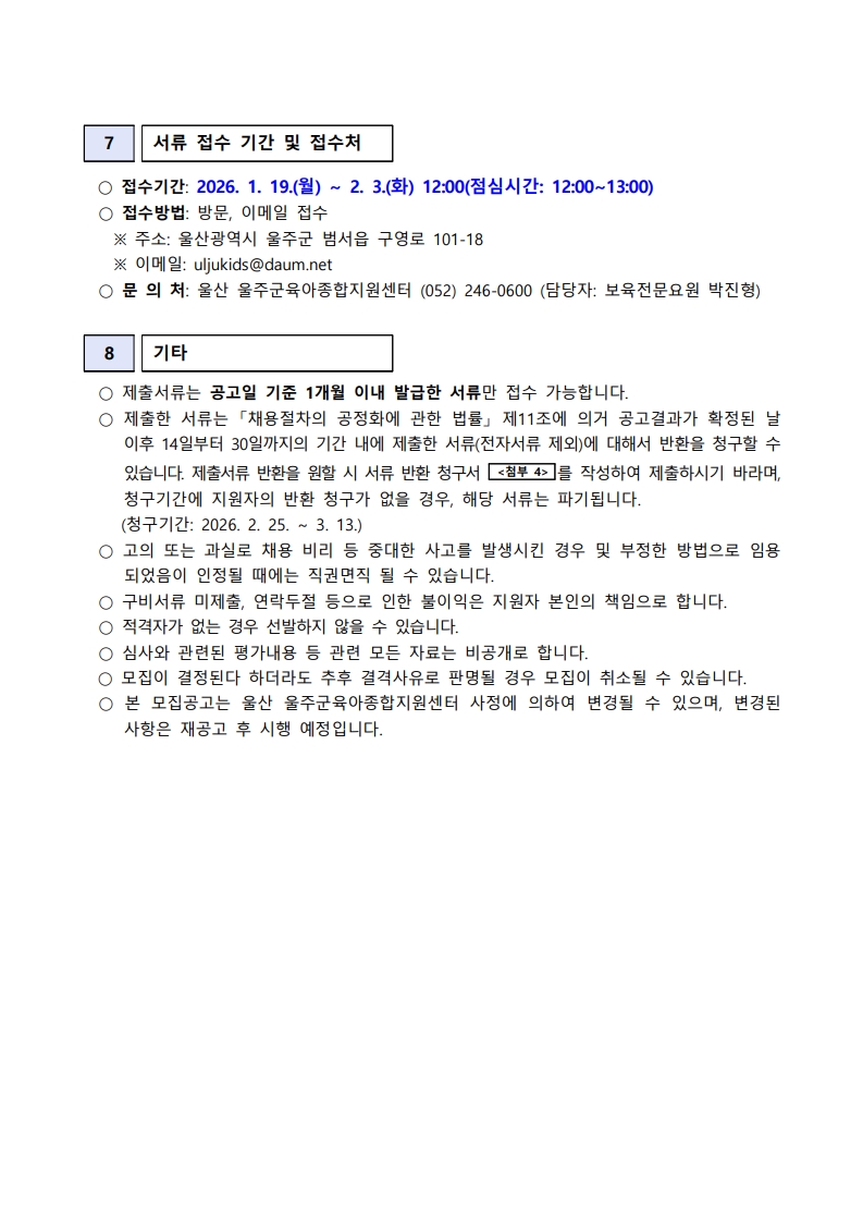 | ´ÙÀ½±Û | ¿ï»ê ¿ïÁÖ±ºÀ°¾ÆÁ¾ÇÕÁö¿ø¼¾ÅÍ Á÷¿ø(ºÎ¸ð‧ÀÚ³à üÇèȰµ¿ º¸Á¶°»ç) ä¿ë °ø°í |