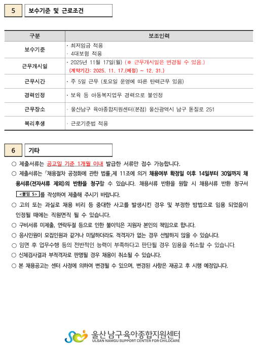 ¿ï»ê ³²±¸À°¾ÆÁ¾ÇÕÁö¿ø¼¾ÅÍ Á÷¿ø(º¸Á¶ÀηÂ) ä¿ë °ø°í