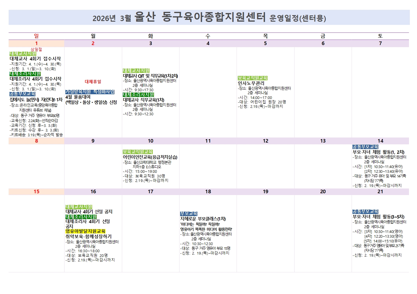 [º»¼¾ÅÍ] 2026³â 3¿ù ¿î¿µ ¾È³»